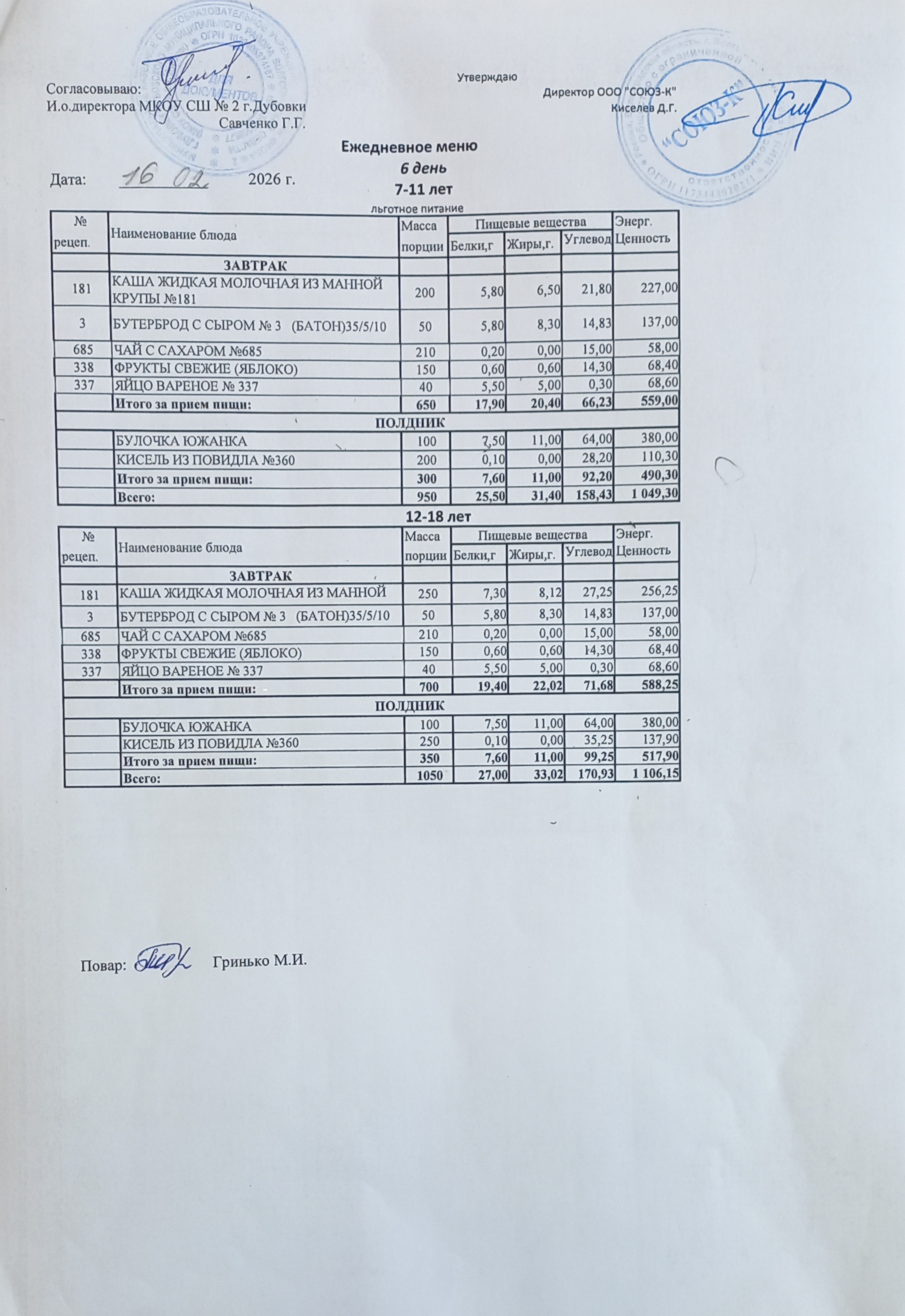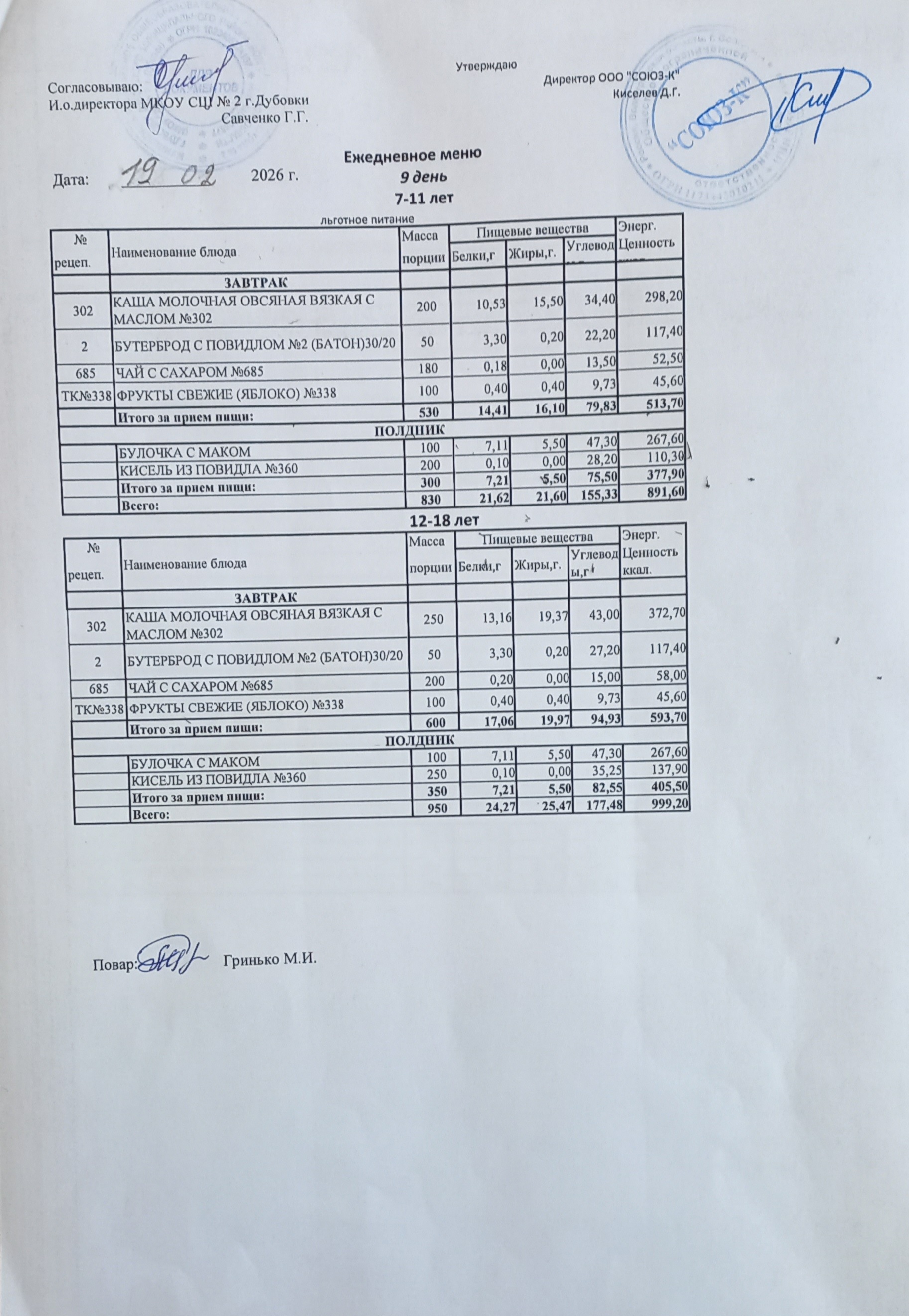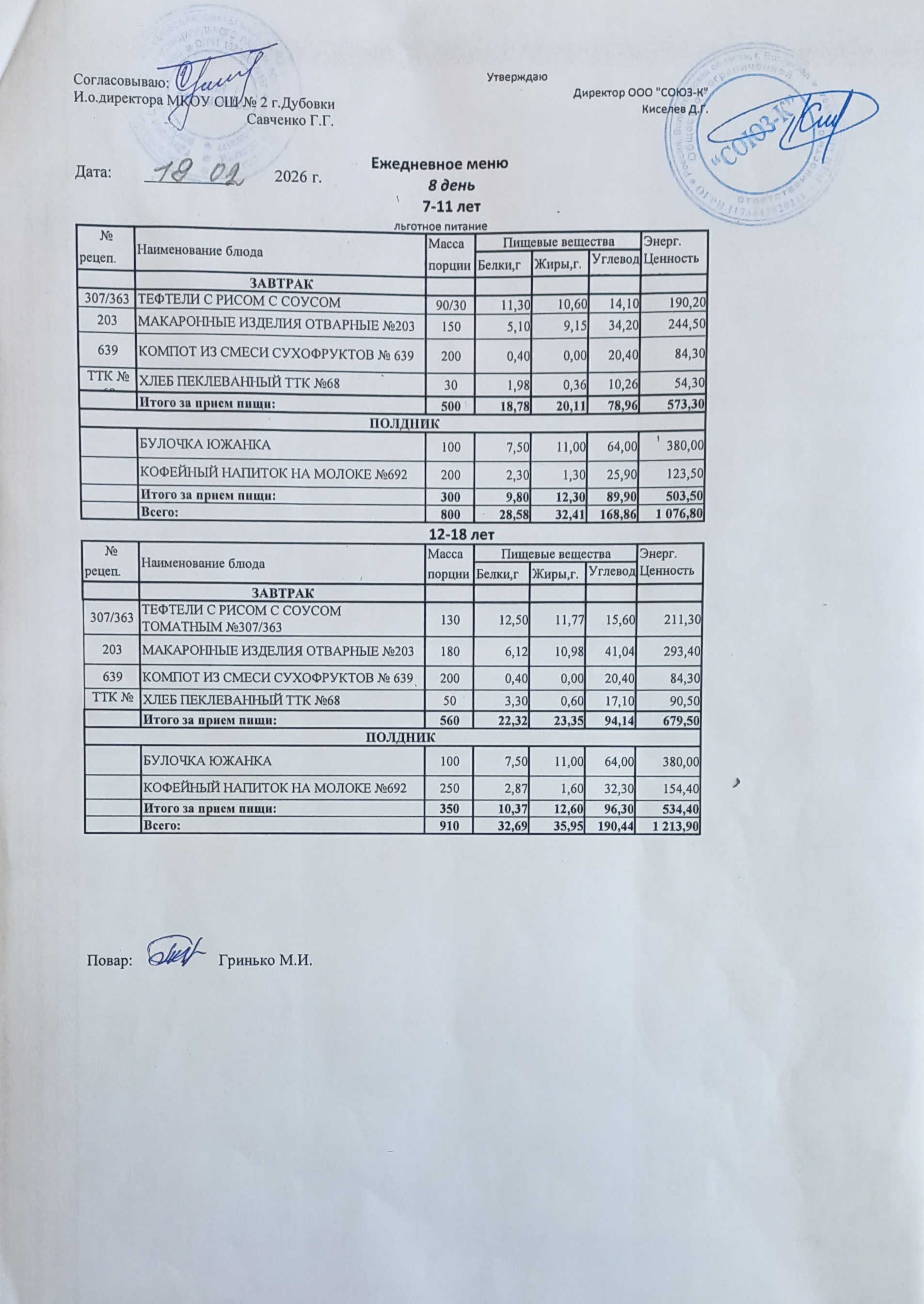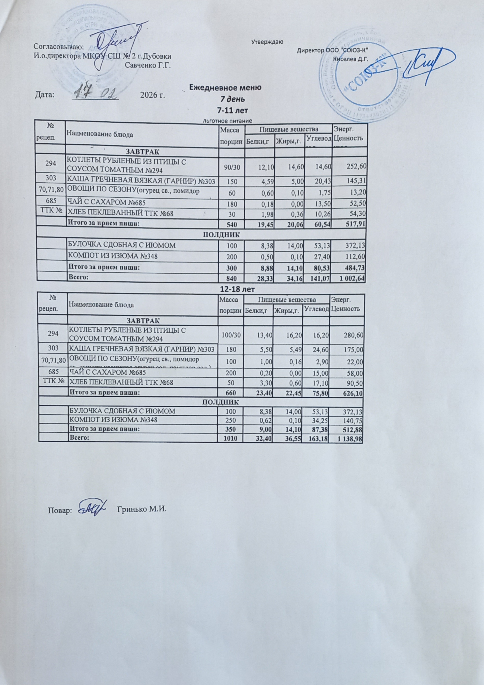 Ежедневное меню ФЕВРАЛЬ 2026 | |||||||||||||||||||