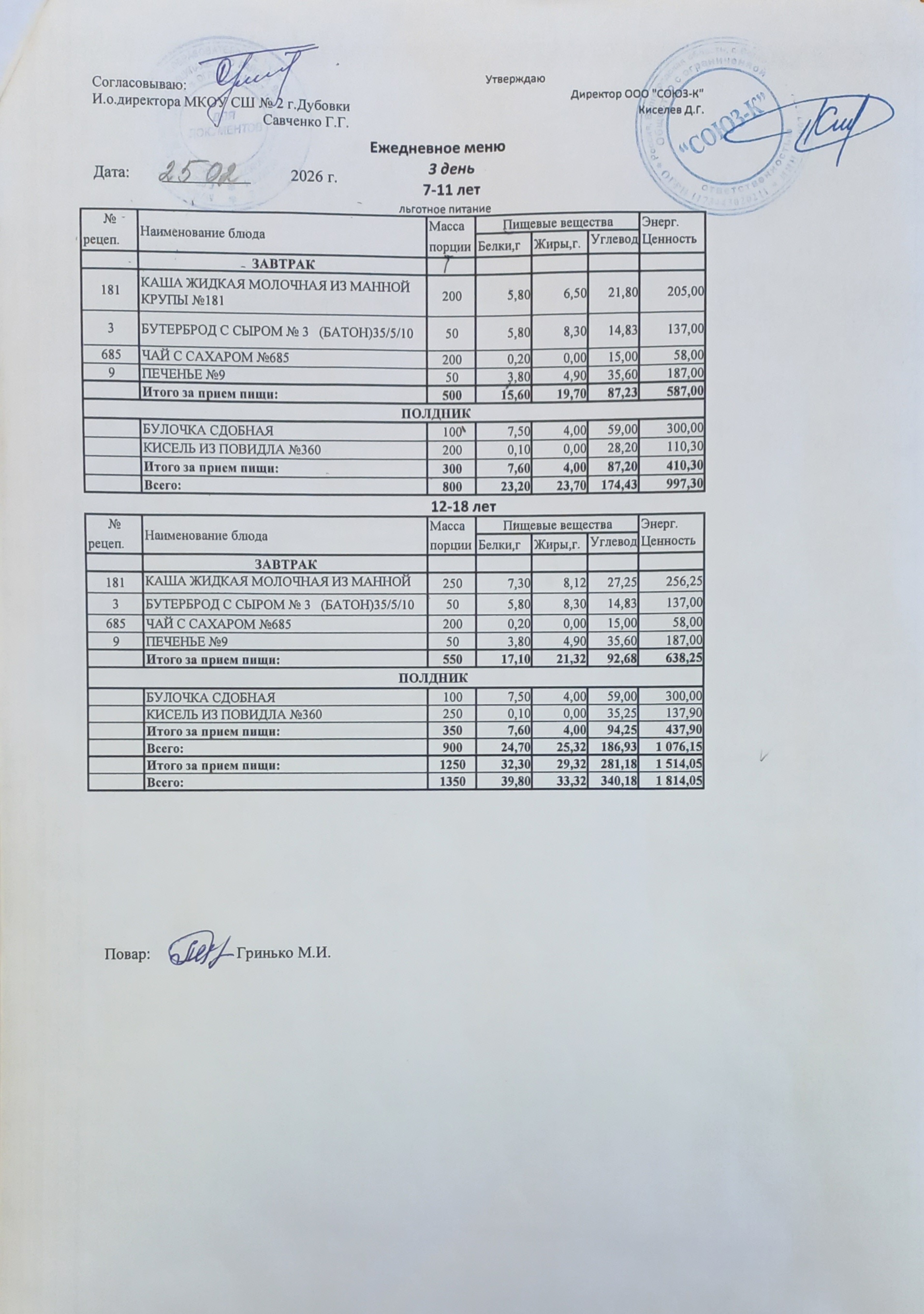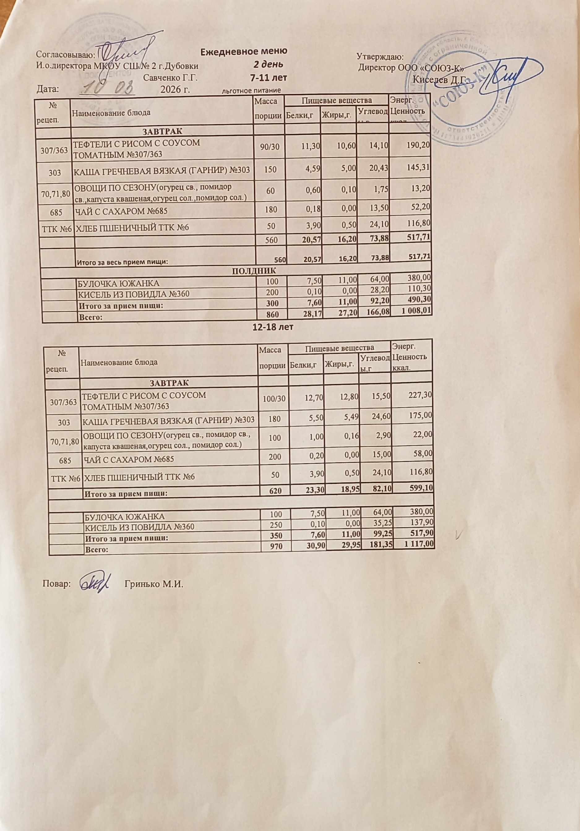 В МКОУ СШ № 2 г. Дубовки на 2025-2026 учебный год предусмотрены меры социальной поддержки в виде частичной компенсации стоимости горячего питания, предусматривающего наличие горячего блюда, не считая горячего напитка, не менее одного раза в день по следующему основанию: