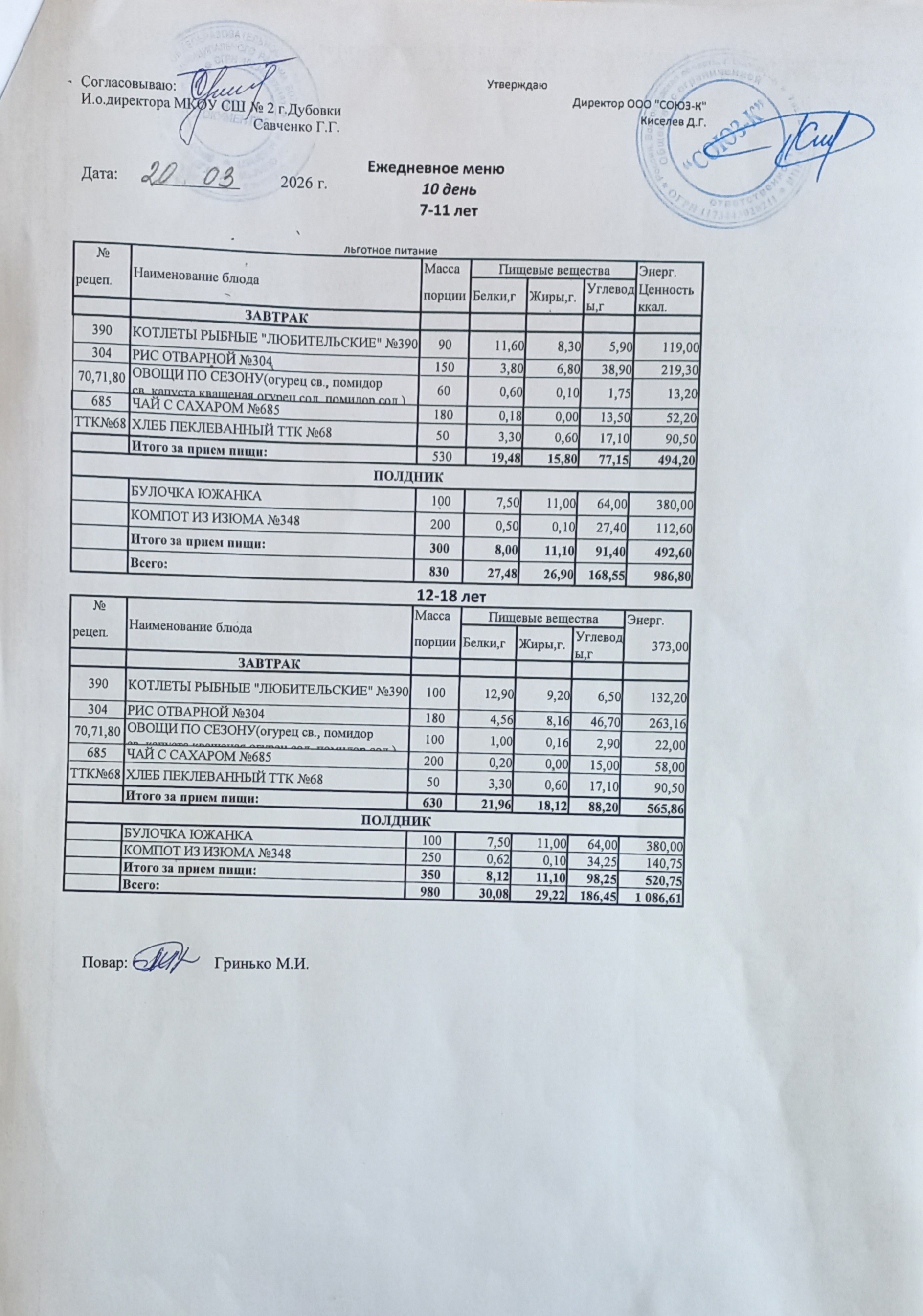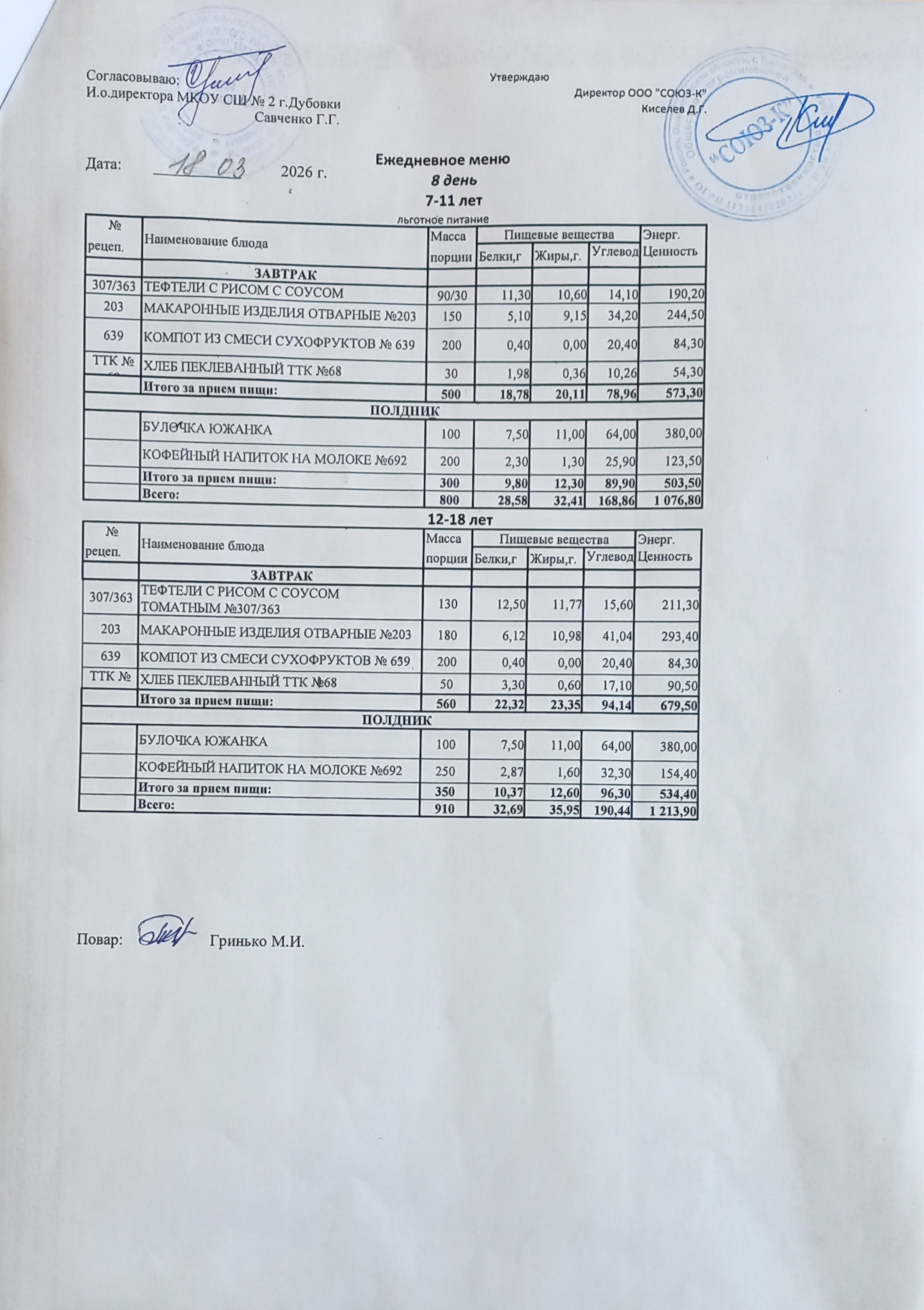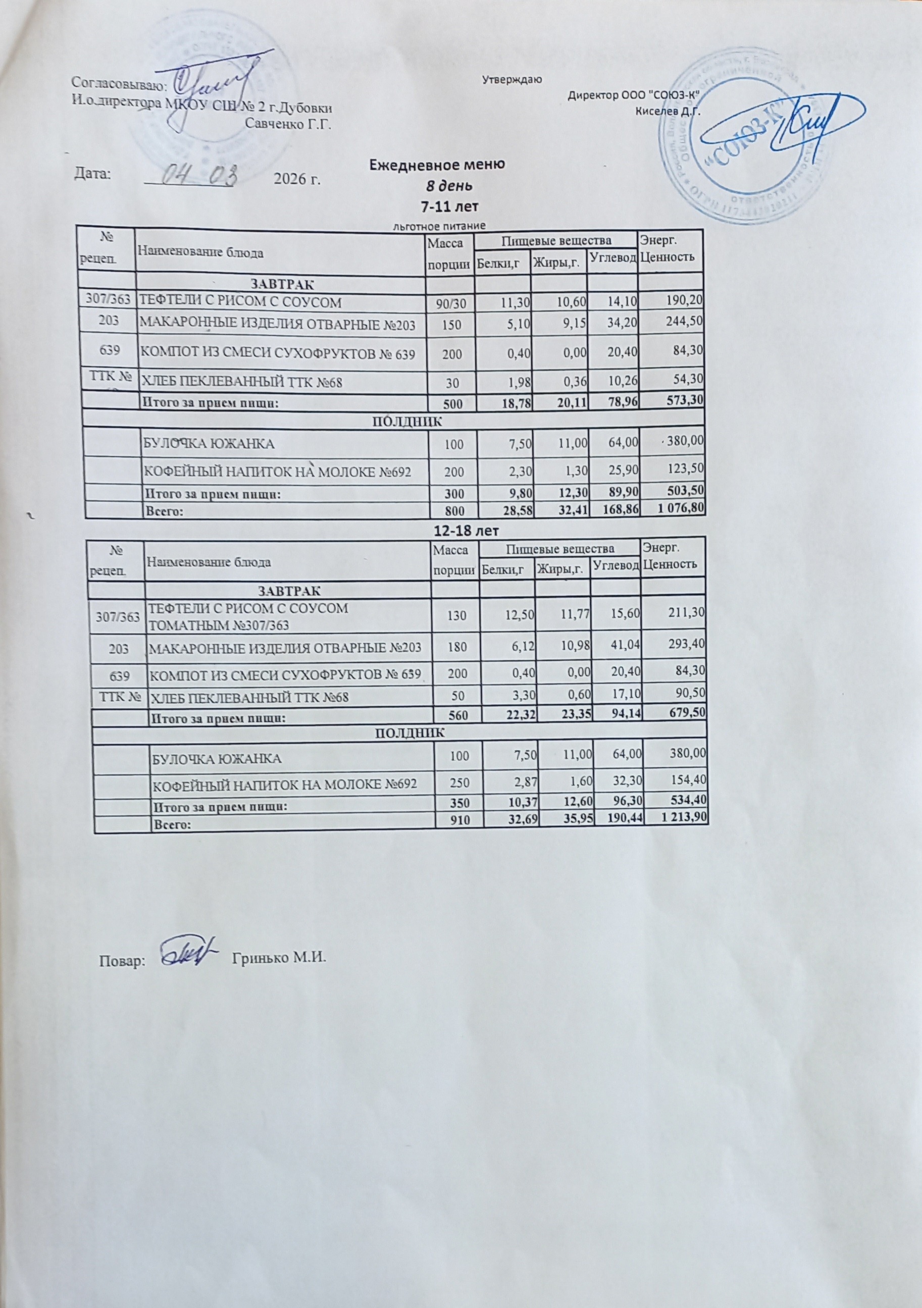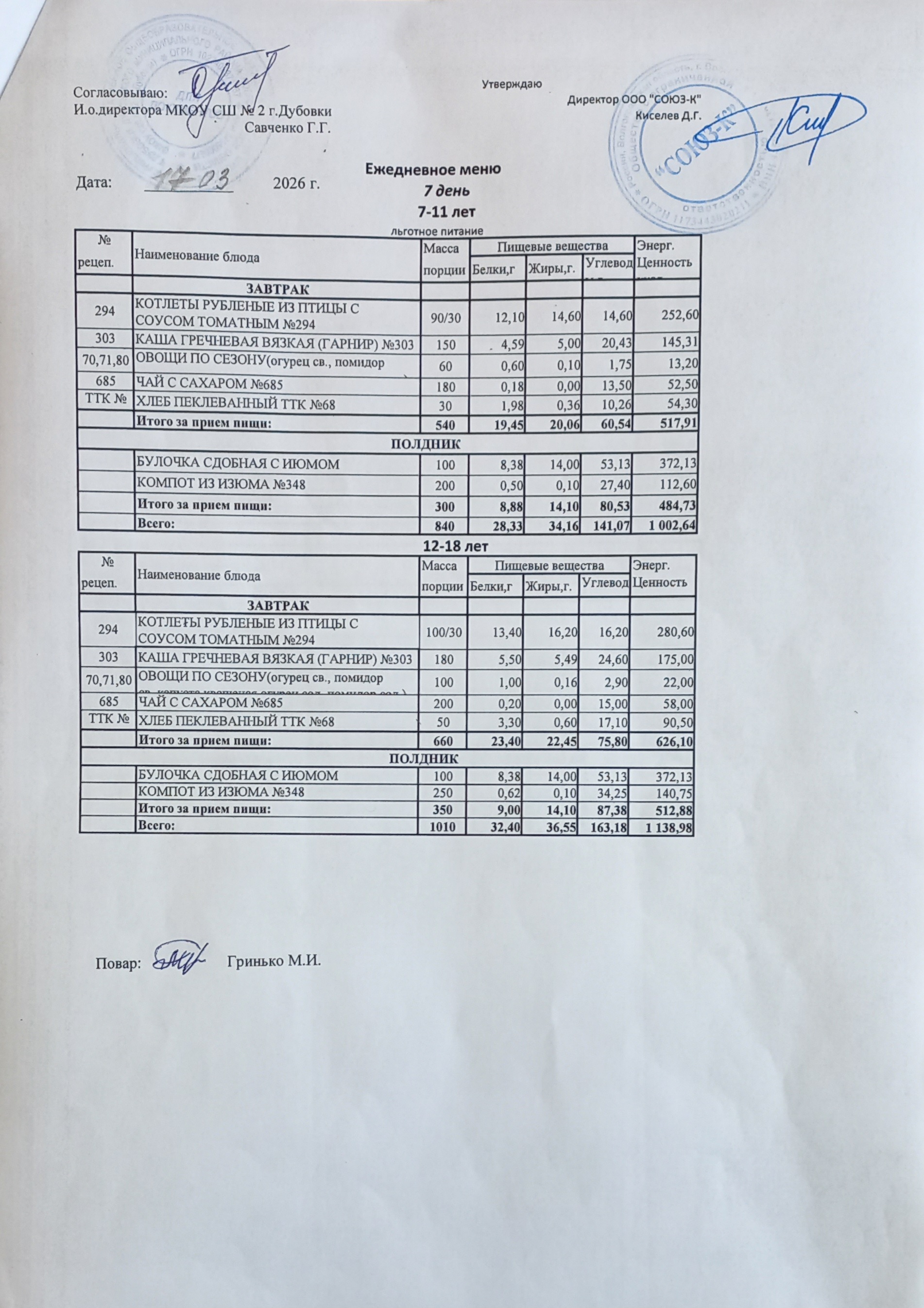 Ежедневное меню МАРТ 2026 | ||||||||||||||||||||