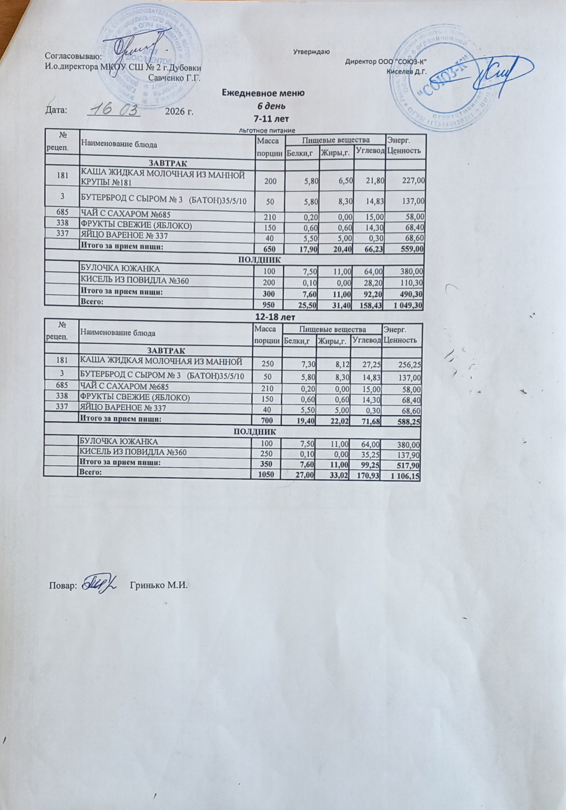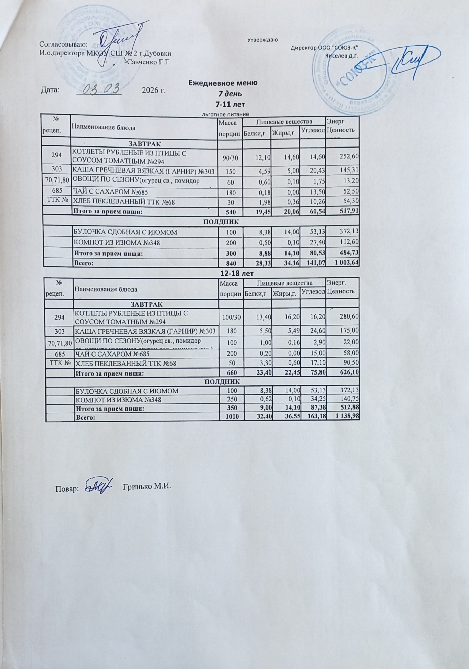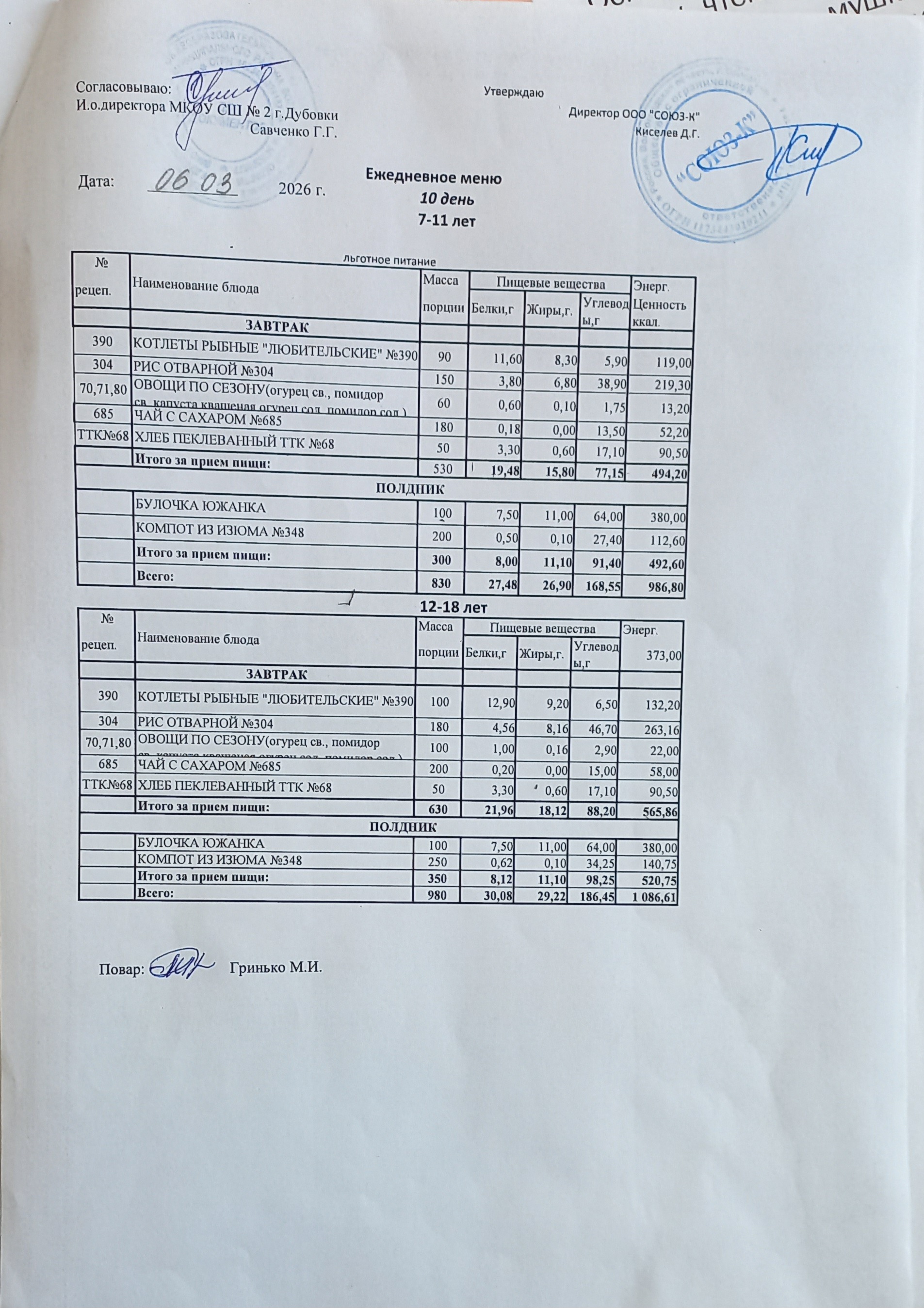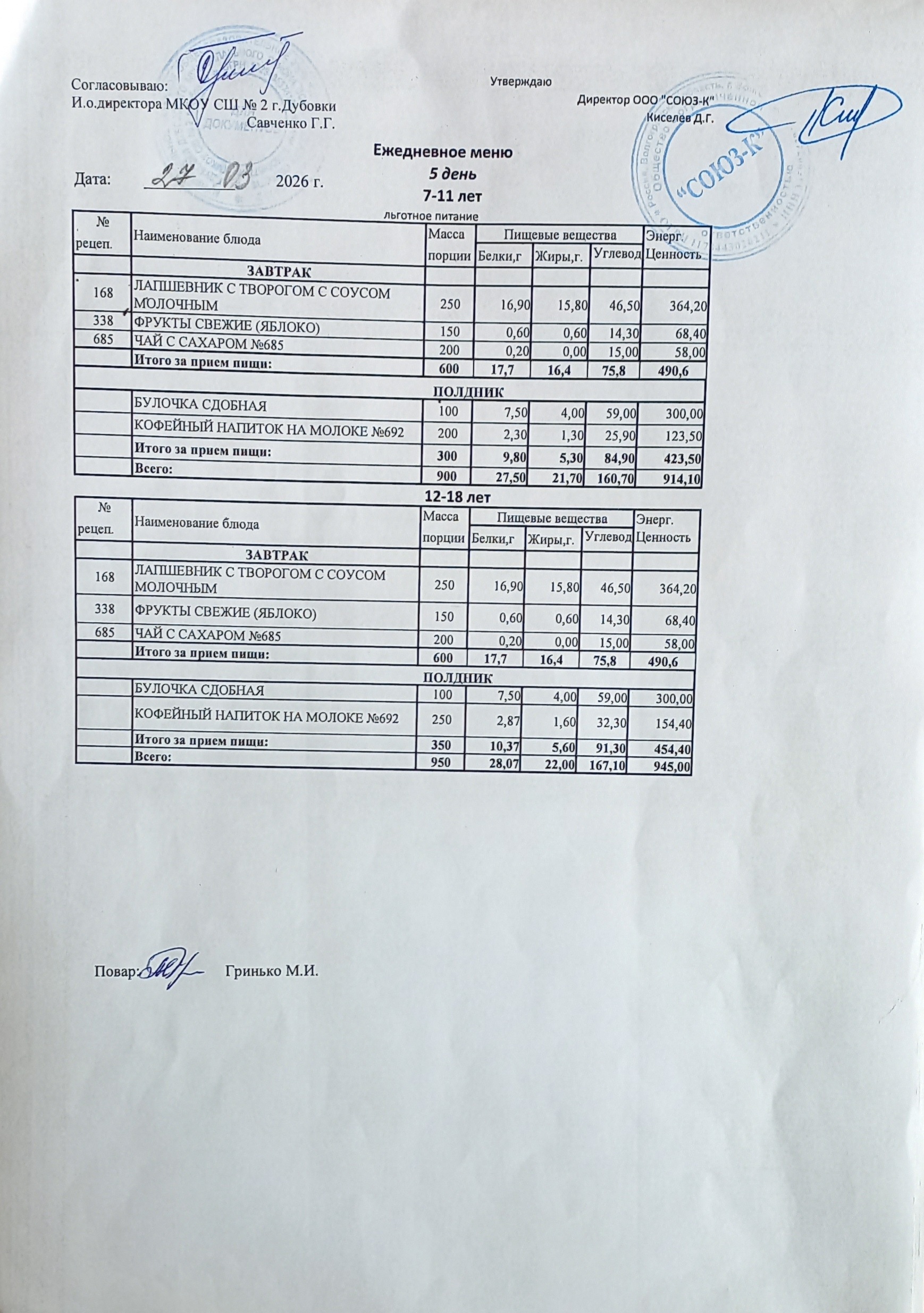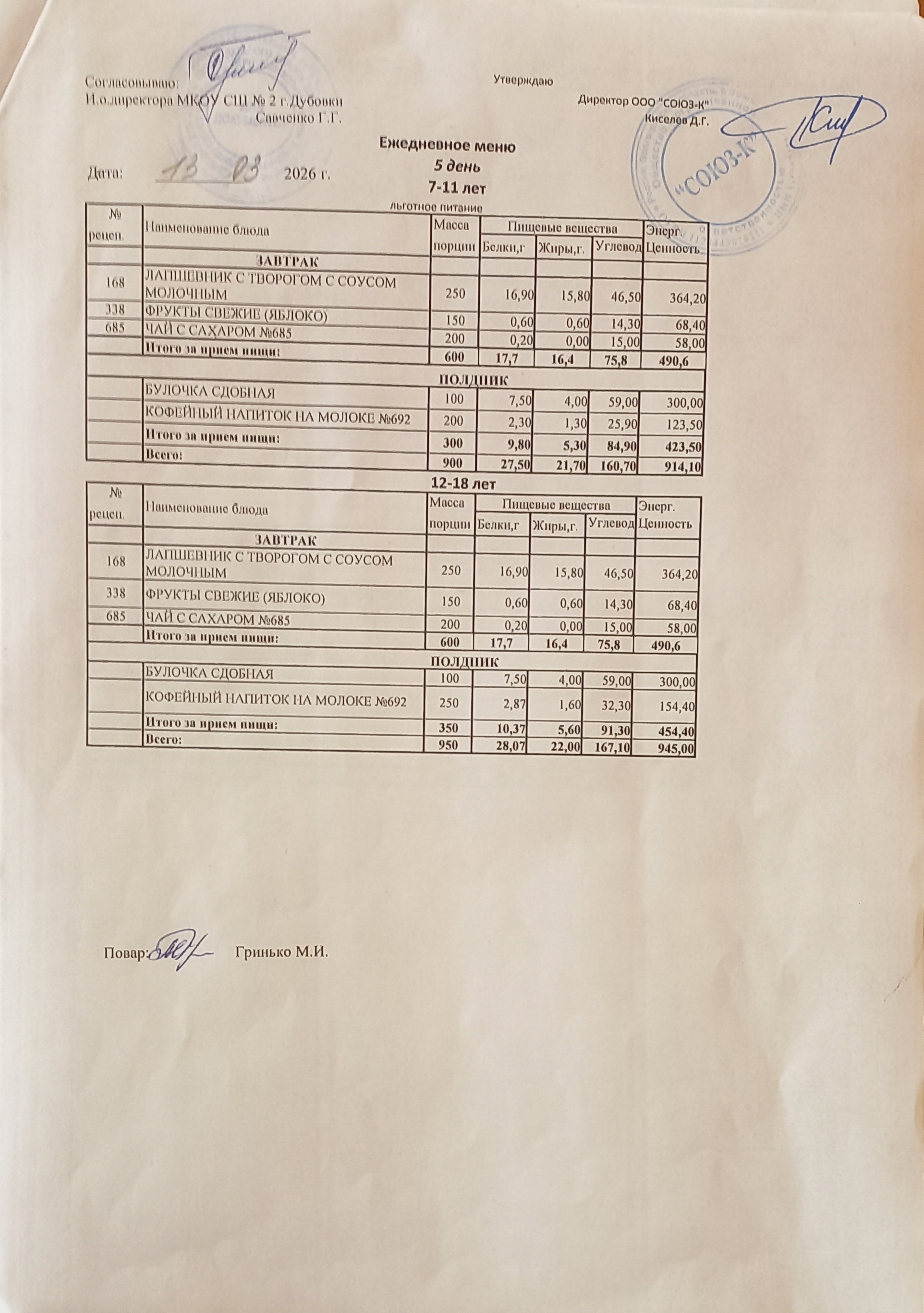 Ежедневное меню МАРТ 2026 | ||||||||||||||||||||