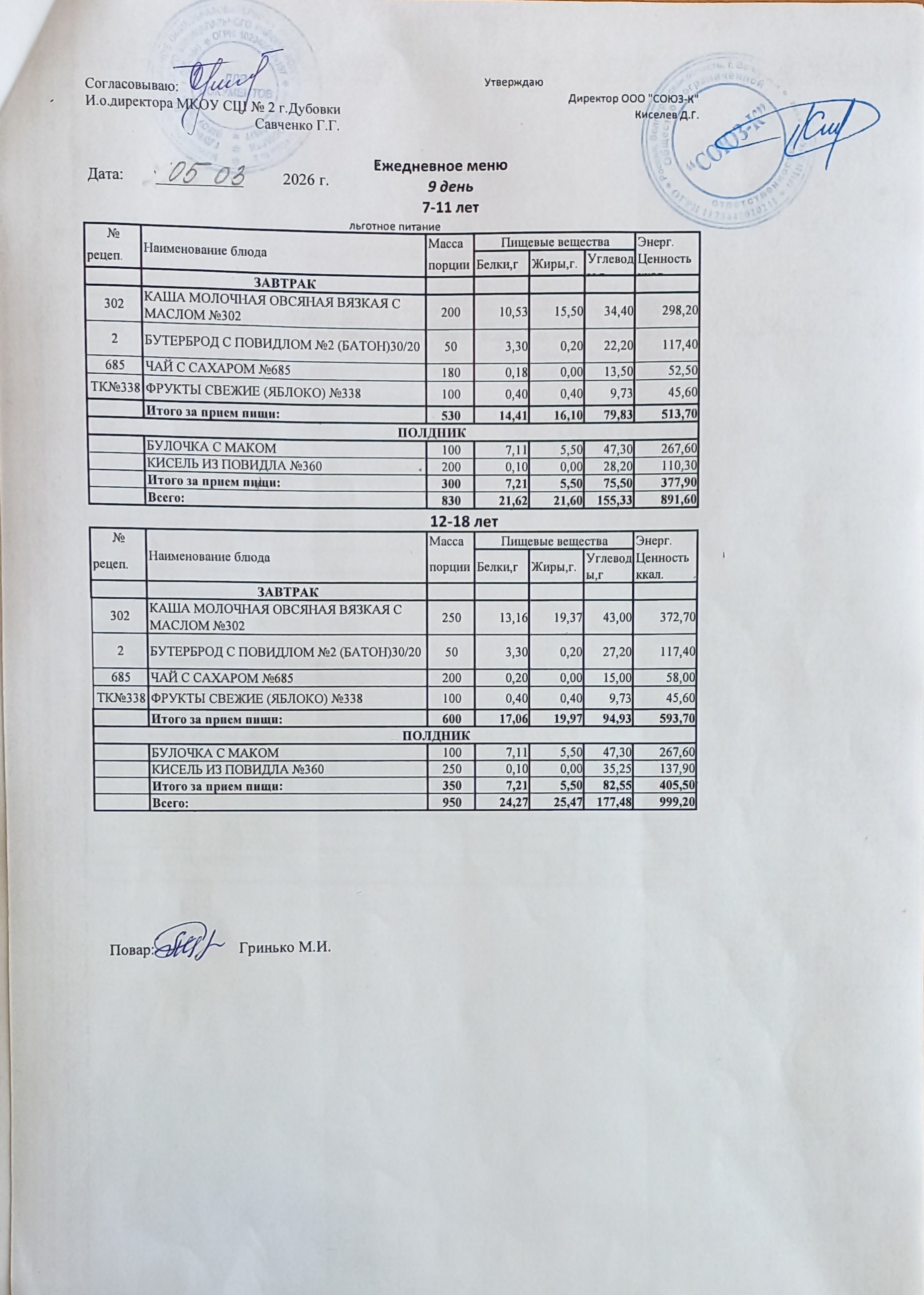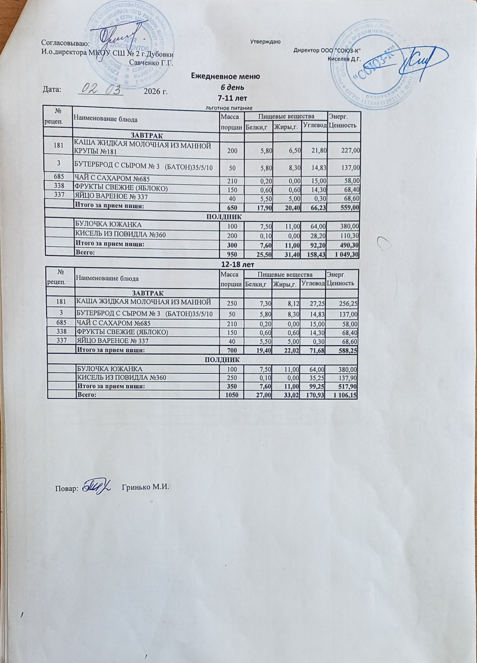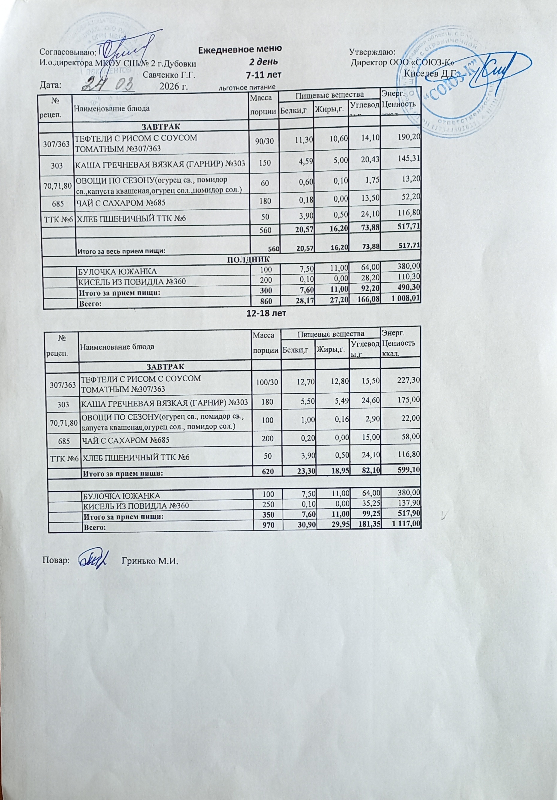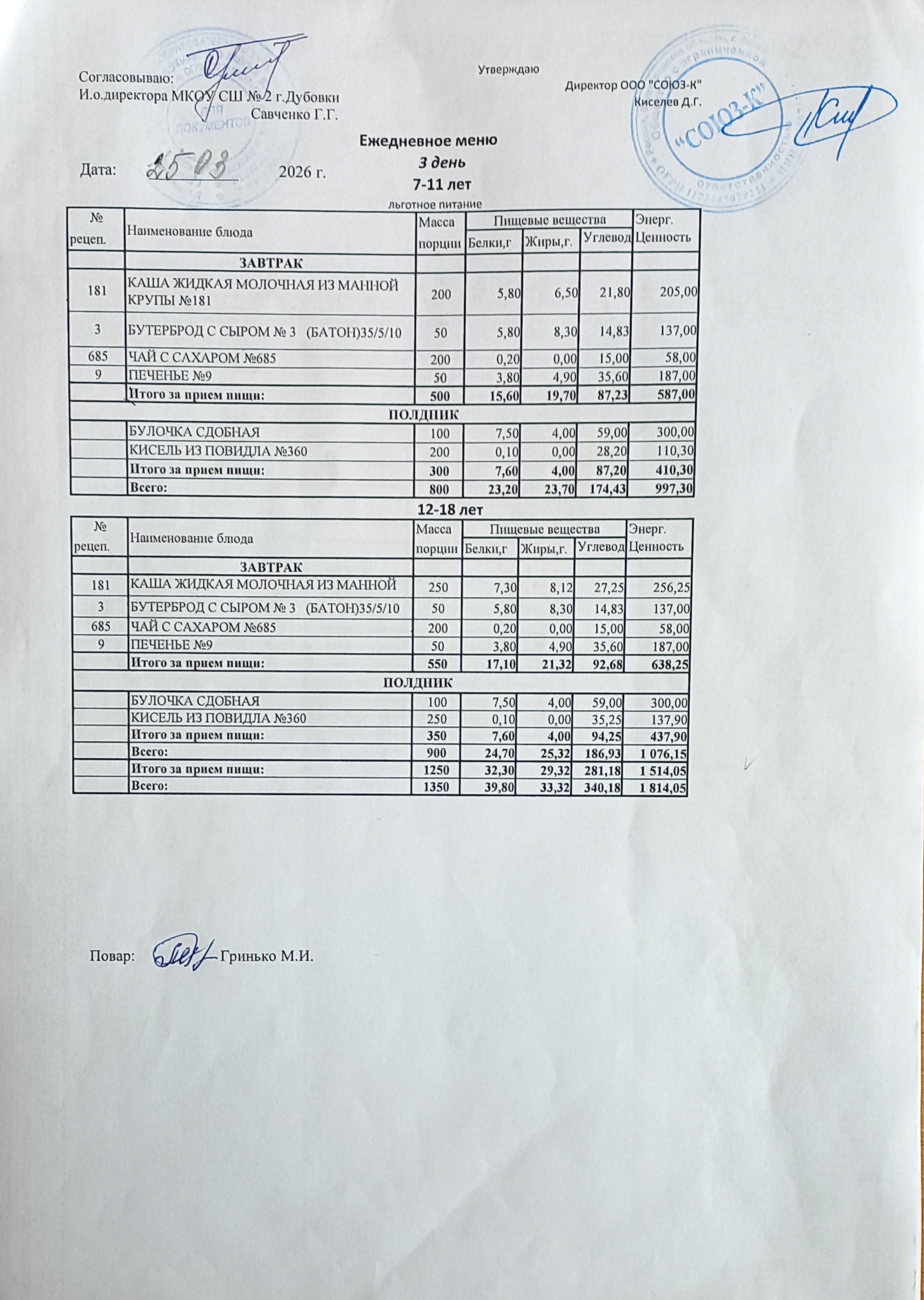 Ежедневное меню МАРТ 2026 | ||||||||||||||||||||
