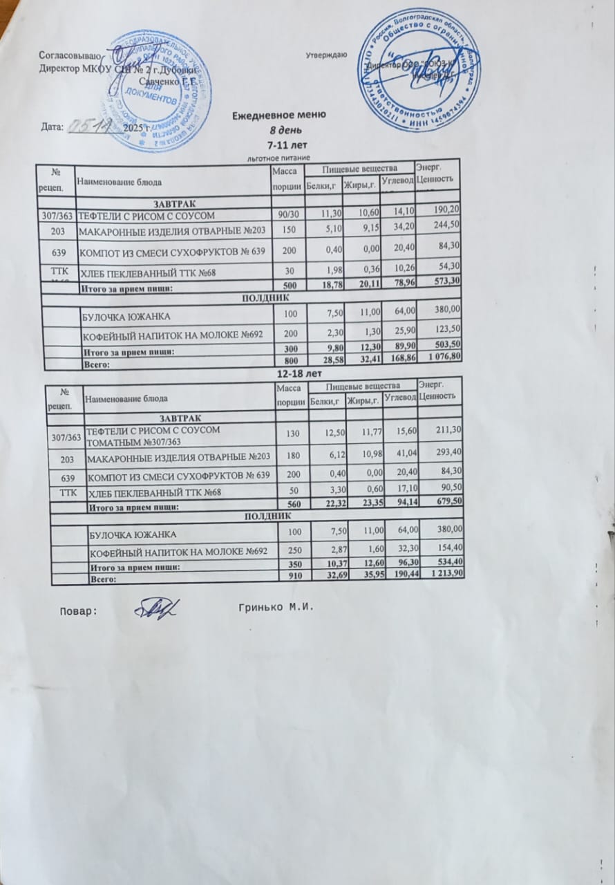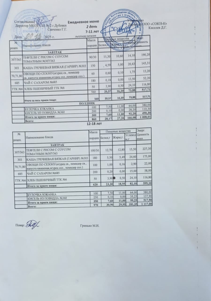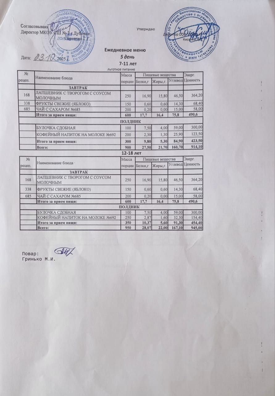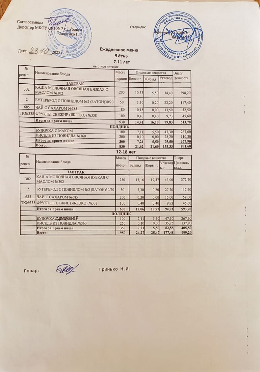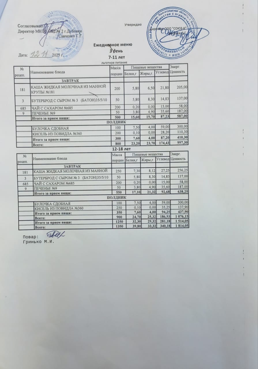Ежедневное меню ОКТЯБРЬ 2025 |