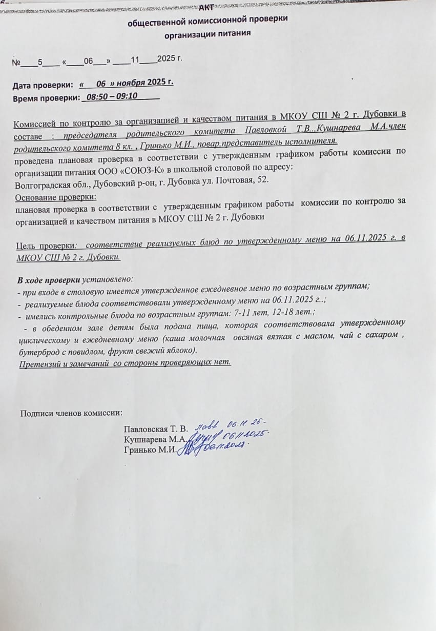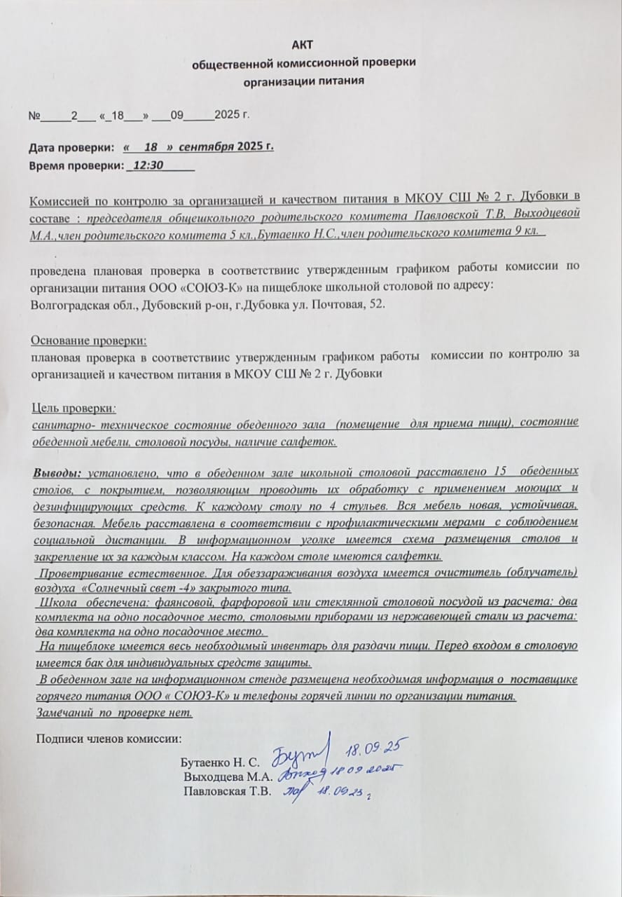Питание обучающихся МКОУ СШ №2 г. Дубовки