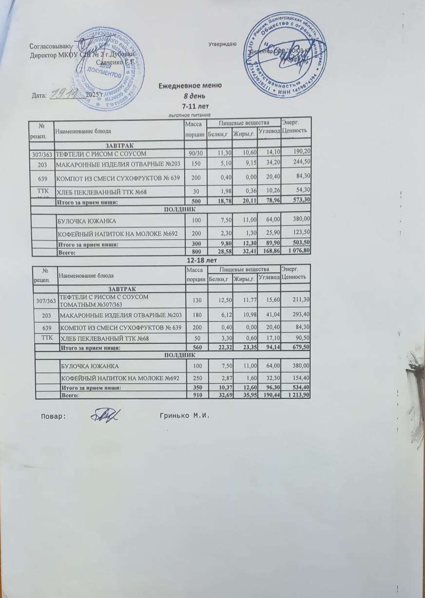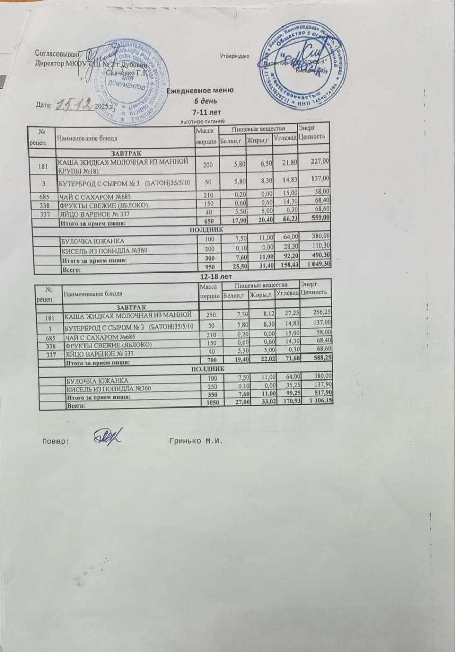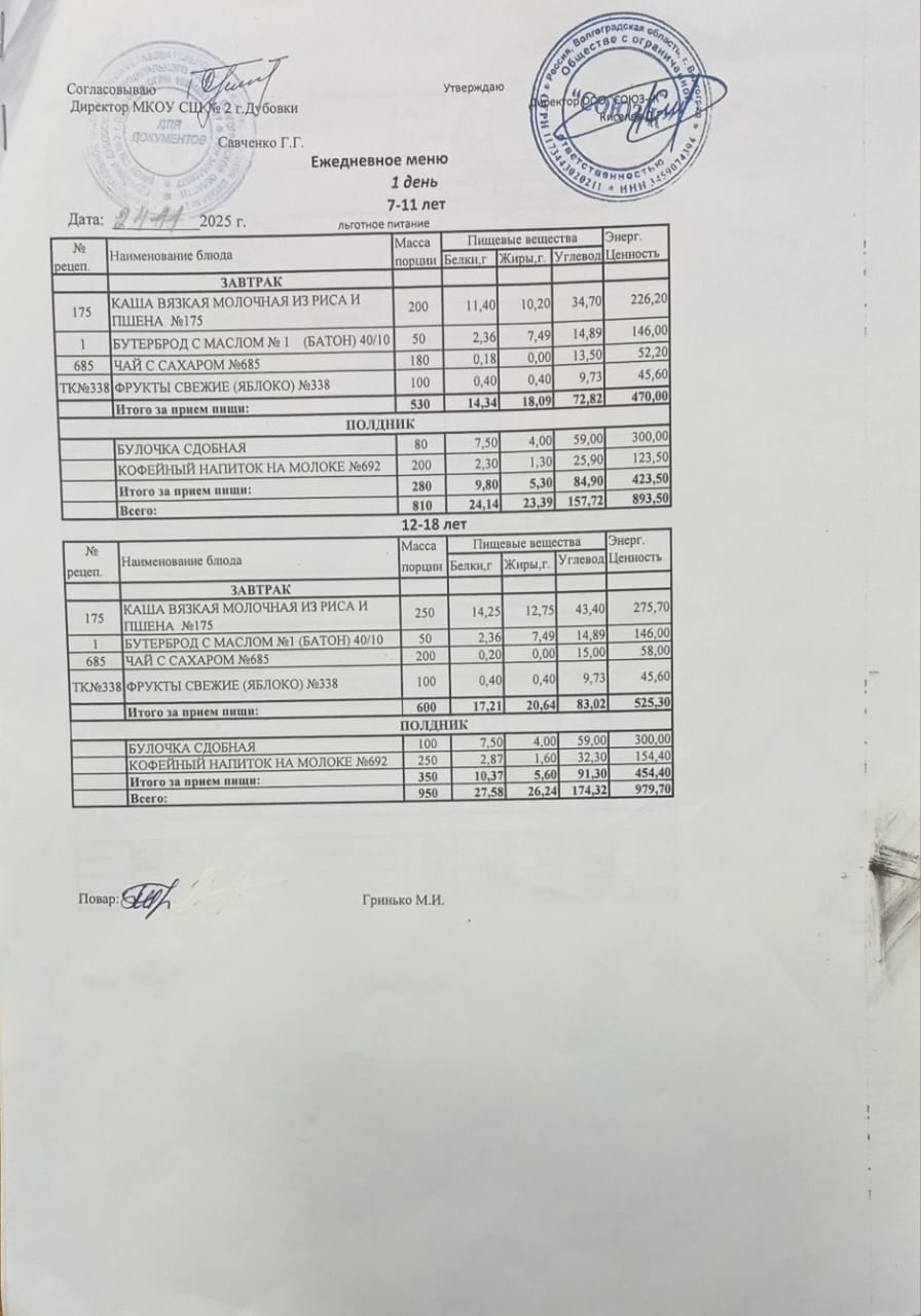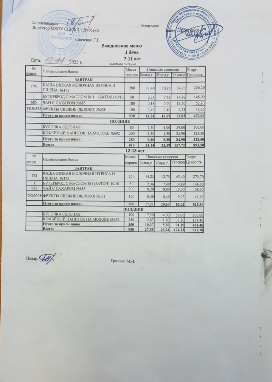 В МКОУ СШ № 2 г. Дубовки на 2025-2026 учебный год предусмотрены меры социальной поддержки в виде частичной компенсации стоимости горячего питания, предусматривающего наличие горячего блюда, не считая горячего напитка, не менее одного раза в день по следующему основанию: